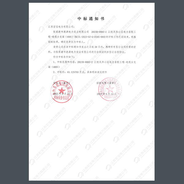 低壓電纜分接箱中標通知書