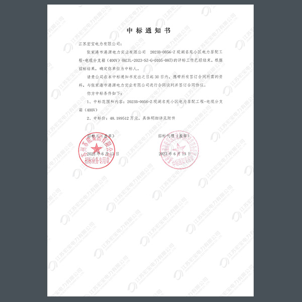 低壓柜中標通知書